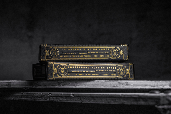 THE CONTRABAND INTERIOR FEATURES AN ELEGANT BLACK FOIL DESIGN.