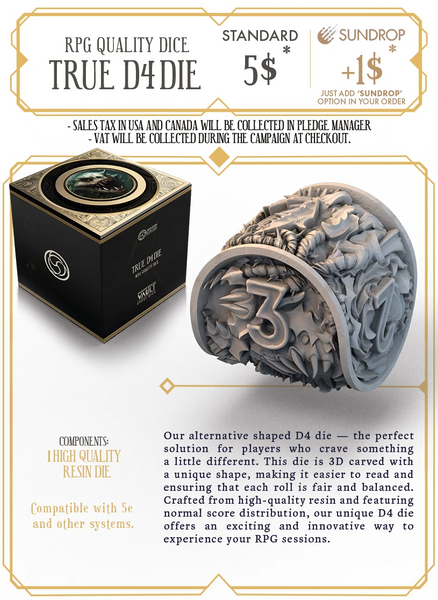 Alternative-shaped D4 die — the perfect solution for players who crave something different. Crafted from high-quality resin, feat. normal score distribution, our D4 die offers a new experience to your RPG sessions. Compatible with 5e and other systems.